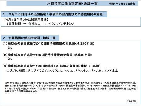 厚生労働省は、3月25日に、海外から新規入国する外国人の隔離指定国から、ミャンマーを解除しました。このほかにも、モンゴル、シンガポール、ネパールも加わり、強制隔離から、自主隔離に変更となりました。 -