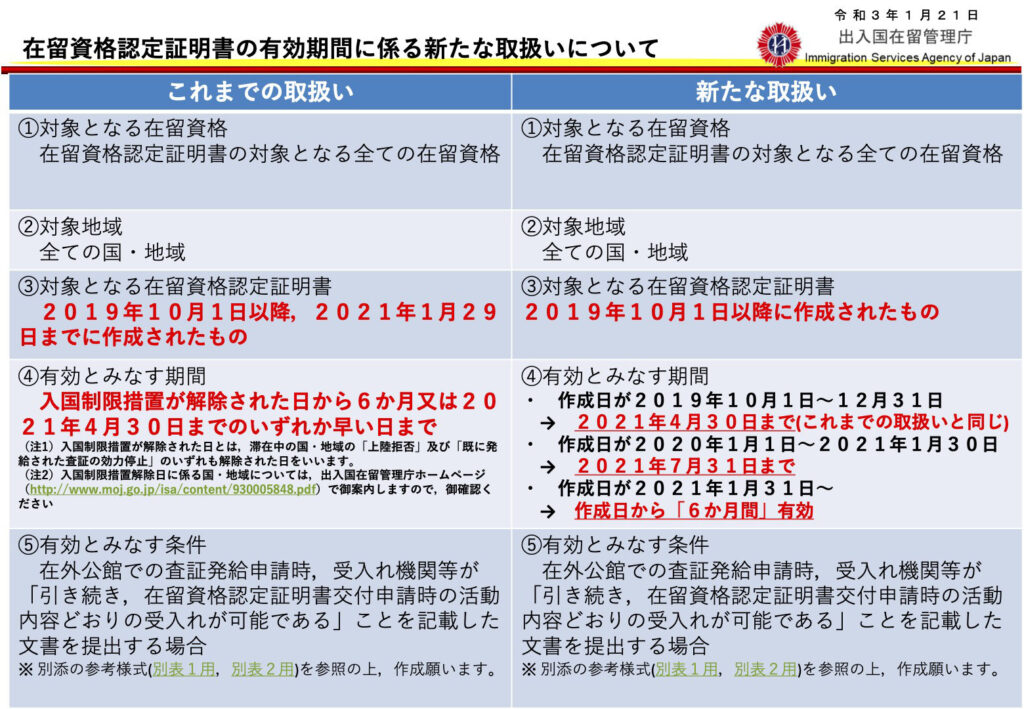 【ビザ・在留資格関連】在留資格認定証明書の有効期限が2022年1月31日まで延長されました