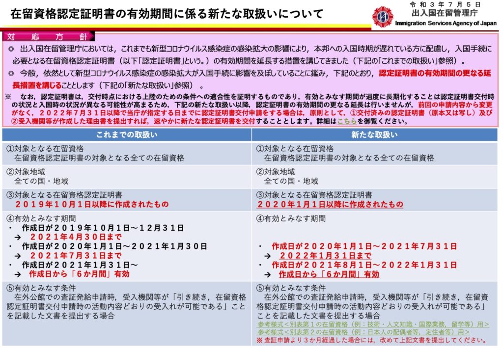 7/5(月)に出入国在留管理庁から、すでに発行済みの在留資格認定証明書の有効期限... -