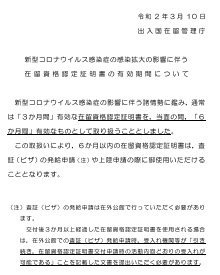 新型コロナウイルス感染症の影響に伴う諸情勢に鑑み,通常 は「3か月間」有効な在留資格認定証明書を,当面の間,「6 か月間」有効なものとして取り扱うこととしました。 -