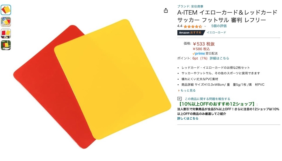ちなみに、Amazonでイエローカードとレッドカードのセットで、533円でした。