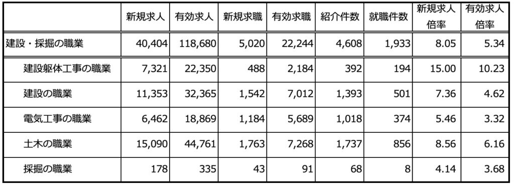 土木の仕事は、6.16倍と、全国平均を大きく上回っています。