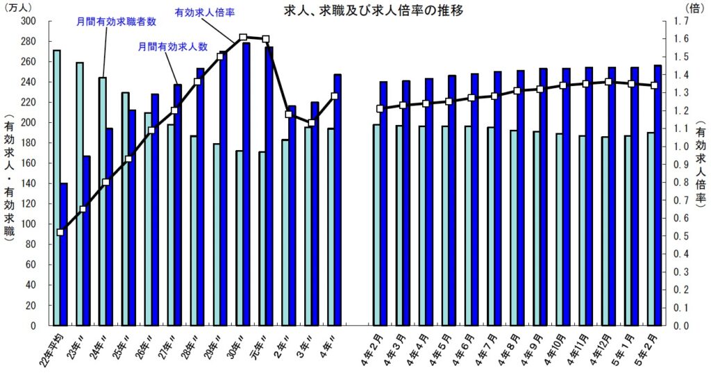 一般職業紹介状況(令和5年2月分)を見ますと、
