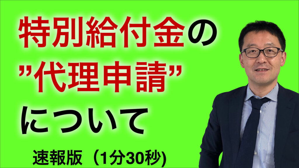 銀行口座を持たない、1年以内の短期滞在外国人で帰国直前など、特別給付金を受領できる権利があるけど、受領できる条件が揃っていない場合は、「代理申請」が可能です。この点を速報としてお伝えします。